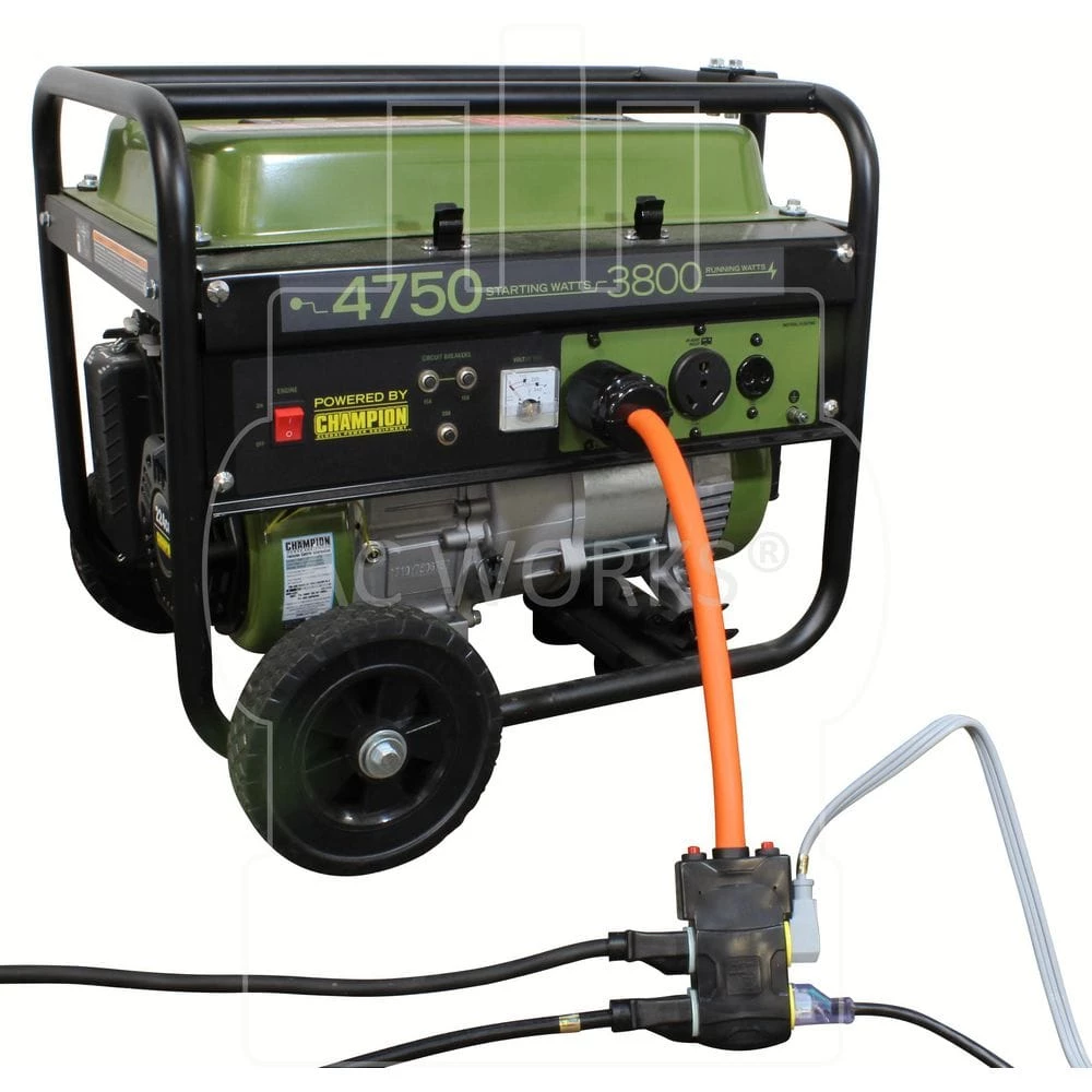 This AC WORKS brand generator power strip cord [L1420CBF520] is very durable. The cord is 1.5-feet in length and is a NEMA L14-20P to four NEMA 5-15/20R household outlets. The NEMA 14-20P is a 20 Amp, 125/250 Volt straight-blade plug. The NEMA 5-15/20R is a 20 Amp, 125 Volt, T-blade household female connector. The cable is an STW, 10/4, 30 Amp copper wire with a 600 Volt anti-cold weather jacket that stays flexible in extreme temperatures. The cord is super durable and typically used with a generator, construction, and industrial equipment. Included with your purchase is a 5-year limited warranty.