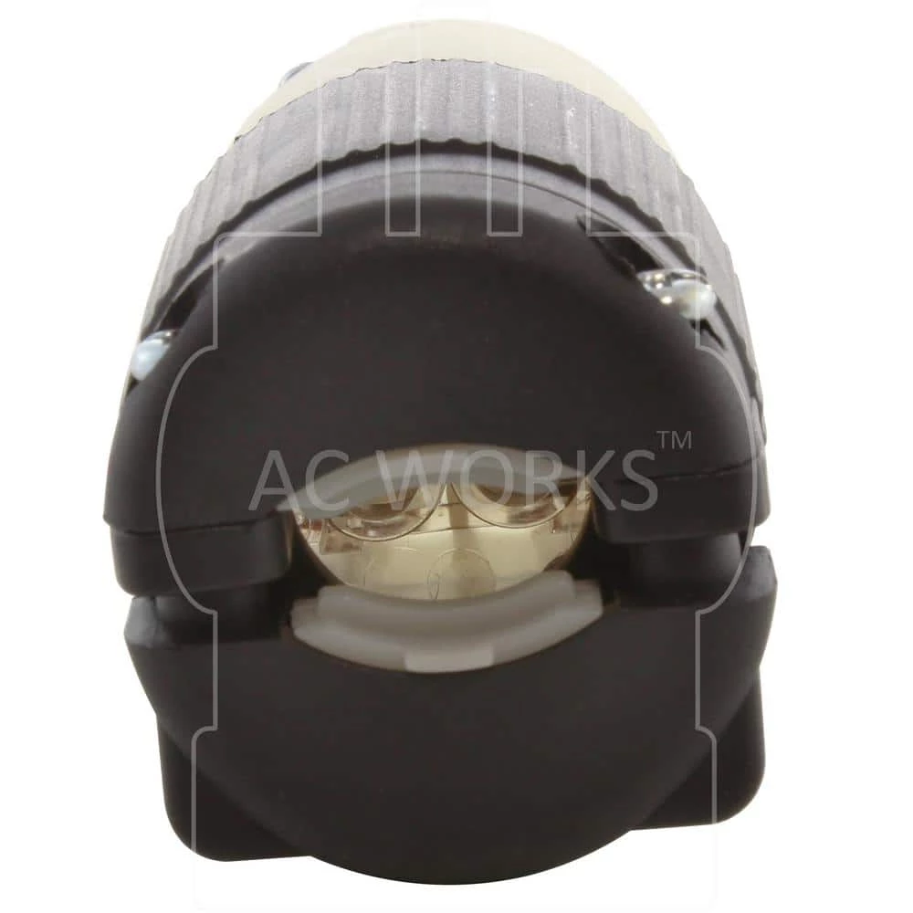 This AC WORKS brand, solid industrial grade wiring device [AS620R] is made of very durable construction able to withstand impacts, chemicals, and weather. It is a NEMA 6-15R and 6-20R, 15/20 Amp, 250 Volt straight-blade plug. This product features a strain relief structure with SJT, SJO, SOO, STW, 12/3, 14/3, 16/3, and 18/3 cable specifications. DIY products include a 1-year limited warranty.