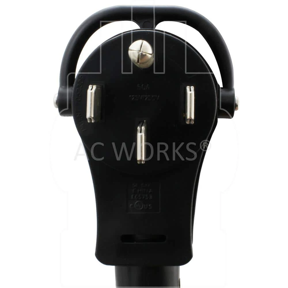 - NEMA 14-50P, 50 Amp, 125-Volt/250-Volt male plug
