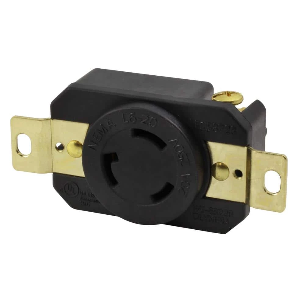 - NEMA L6-20R, 20 Amp, 250-Volt flush mount