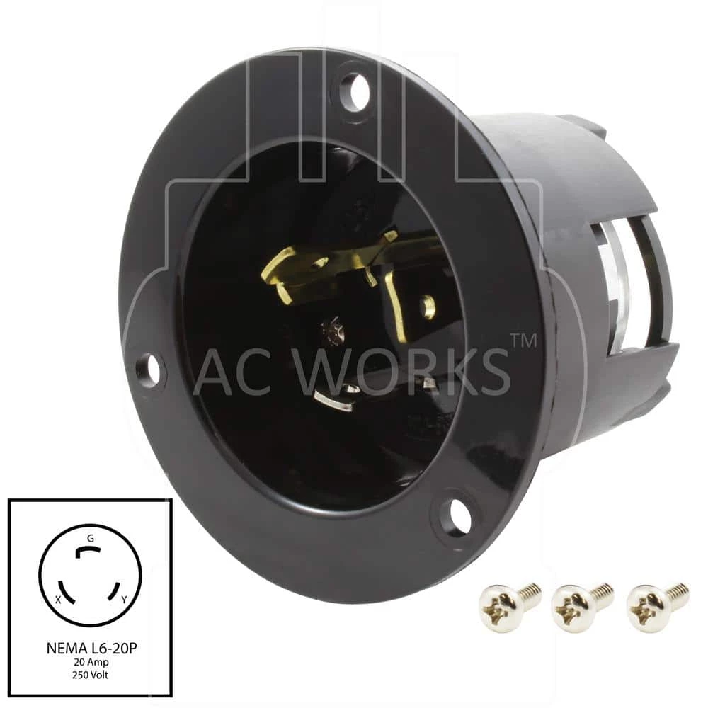 This AC WORKS brand inlet wiring device [ASINL520P] is a heavy-duty power input connection device. It is used for an industrial and commercial grade flange inlet. This inlet works with 12 AWG (American Wire Gauge) copper wire and is commonly used for boats, Cabins, residential, transfer switch and generators. Note: 18-Gauge is for 10 Amp, 16-Gauge is for 13 Amp, 14-Gauge is for 16 Amp, 12-Gauge is for 20 Amp. California Residents: See Proposition 65 Information Residential, Generator, Transfer Switch and Cabin Power Inlet 20 Amp, 125-Volt Inlet NEMA L5-20P Power Inlet UL and C-UL Certified 1-year Limited Warranty.