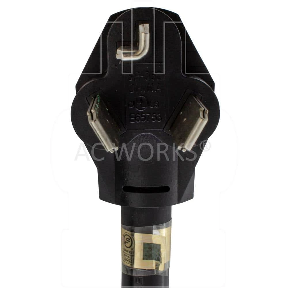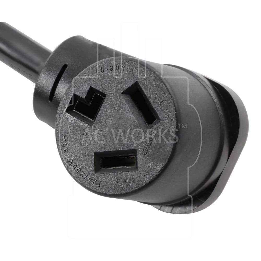 This AC WORKS brand extension cord [1030PR] is very durable. The extension cord comes in 10, 25 and 50 ft. in length. It is a NEMA 10-30P to a NEMA 10-30R. This 3-prong dryer extension cord is heavy-duty and is used to get 220-Volt power from your dryer outlet to a variety of sources. Some examples include charging your electric vehicle or relocating your dryer. The cord is flexible and durable as well as weather and water-resistant. This product is UL listed and applicable to UL standards and requirements and it includes a 5-year limited warranty.