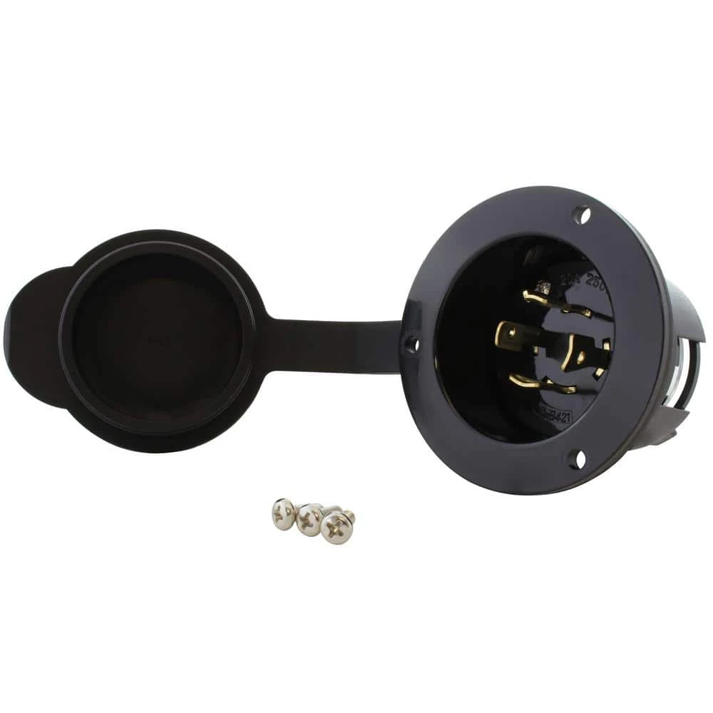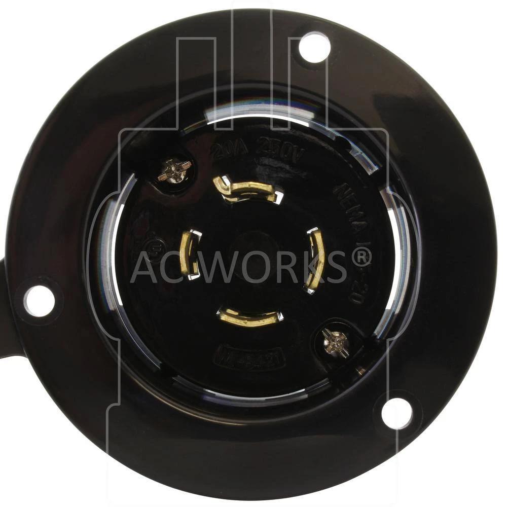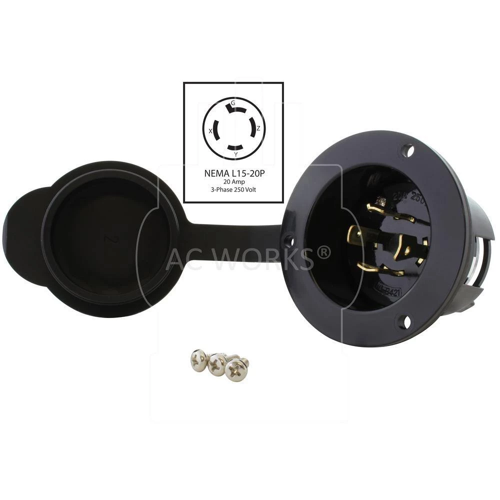 This AC WORKS brand inlet wiring device is a heavy-duty power input connection device with weather cover. L15-20 Inlet is used for an industrial and commercial grade flange inlet. This inlet works with a 12 AWG (American Wire Gauge) or above copper wire and is commonly used for residential, transfer switch, cabins and generator power. Note: 18-Gauge is for 10 Amp, 16-Gauge is for 13 Amp, 14-Gauge is for 16 Amp, 12-Gauge is for 20 Amp and 10-Gauge is for 30 Amp. California Residents: See Proposition 65 Information Industrial, Generator, Transfer Switch and Cabin Power Inlet 3-Phase 20 Amp, 250-Volt Inlet NEMA L15-20P 3-Phase 250Volt Power Inlet UL and C-UL Certified 1-year Limited Warranty.