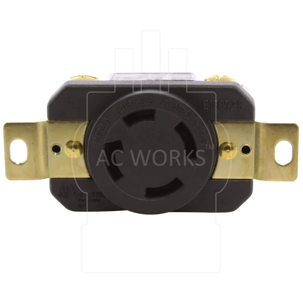 This AC WORKS brand female outlet receptacle [FML1530R] features a 3-pole, 4-wire grounding system. It is a NEMA L15-30R, 30 Amp, 3-Phase 250 Volt flush mount locking design. This product is installed into your generator to repair or change your generator receptacle. It features a chemical and impact resistant housing along with a quick installation process. The FML1530R is UL and C-UL certified. Included with your purchase is a 1-year limited warranty.