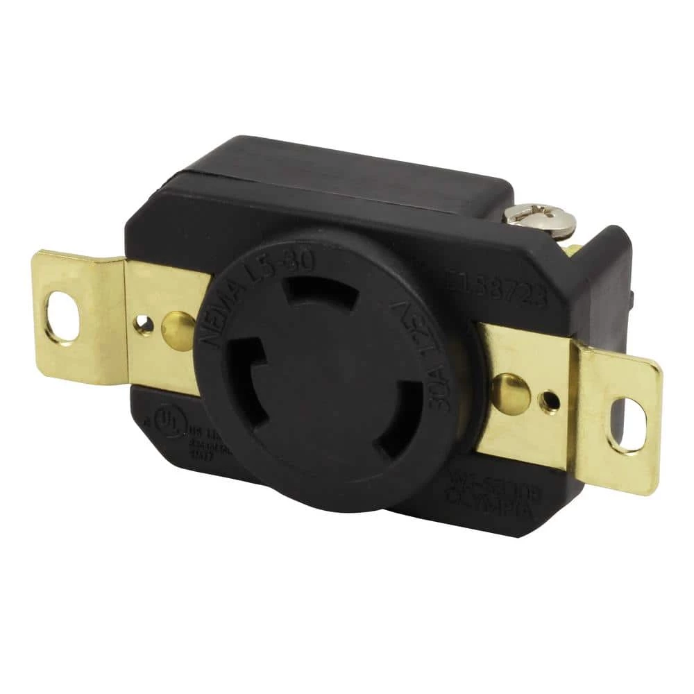 - NEMA L5-30R, 30 Amp, 125-Volt flush mount locking design