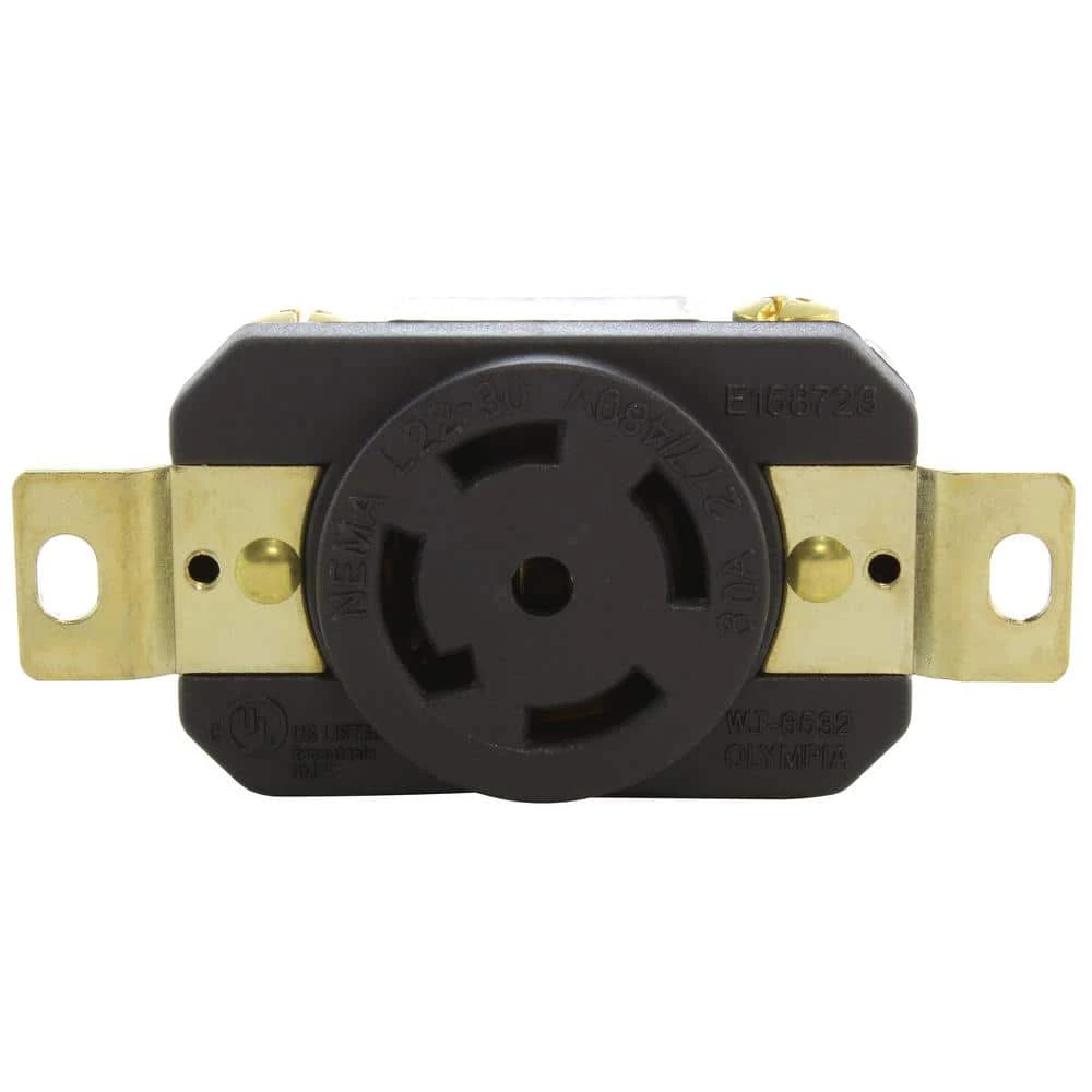 This AC WORKS brand female outlet receptacle features a 4-pole, 5-wire grounding system. It is a NEMA L22-30R, 30 Amp, 277/480 Volt flush mount locking design. This product is installed into your generator to repair or change your generator receptacle. It features chemical and impact-resistant housing along with a quick installation process. The FML2230R is UL and C-UL certified. Included with your purchase is a 1-year limited warranty.