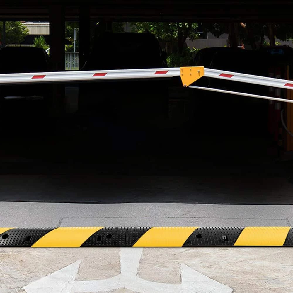 - High Visibility Color Strip: Traditional black+yellow color with a reflective coating can bring attention to the speed bump at night and low light environments. High visibility can work as a secure highlight sign to notify drivers and passers-by to slow off