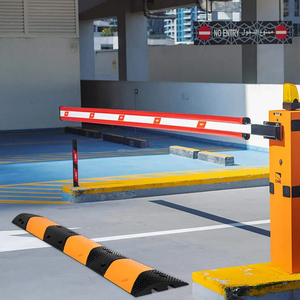 - High Visibility Color Strip: Traditional black+yellow color with a reflective coating can bring attention to the speed bump at night and low light environments. High visibility can work as a secure highlight sign to notify drivers and passers-by to slow off