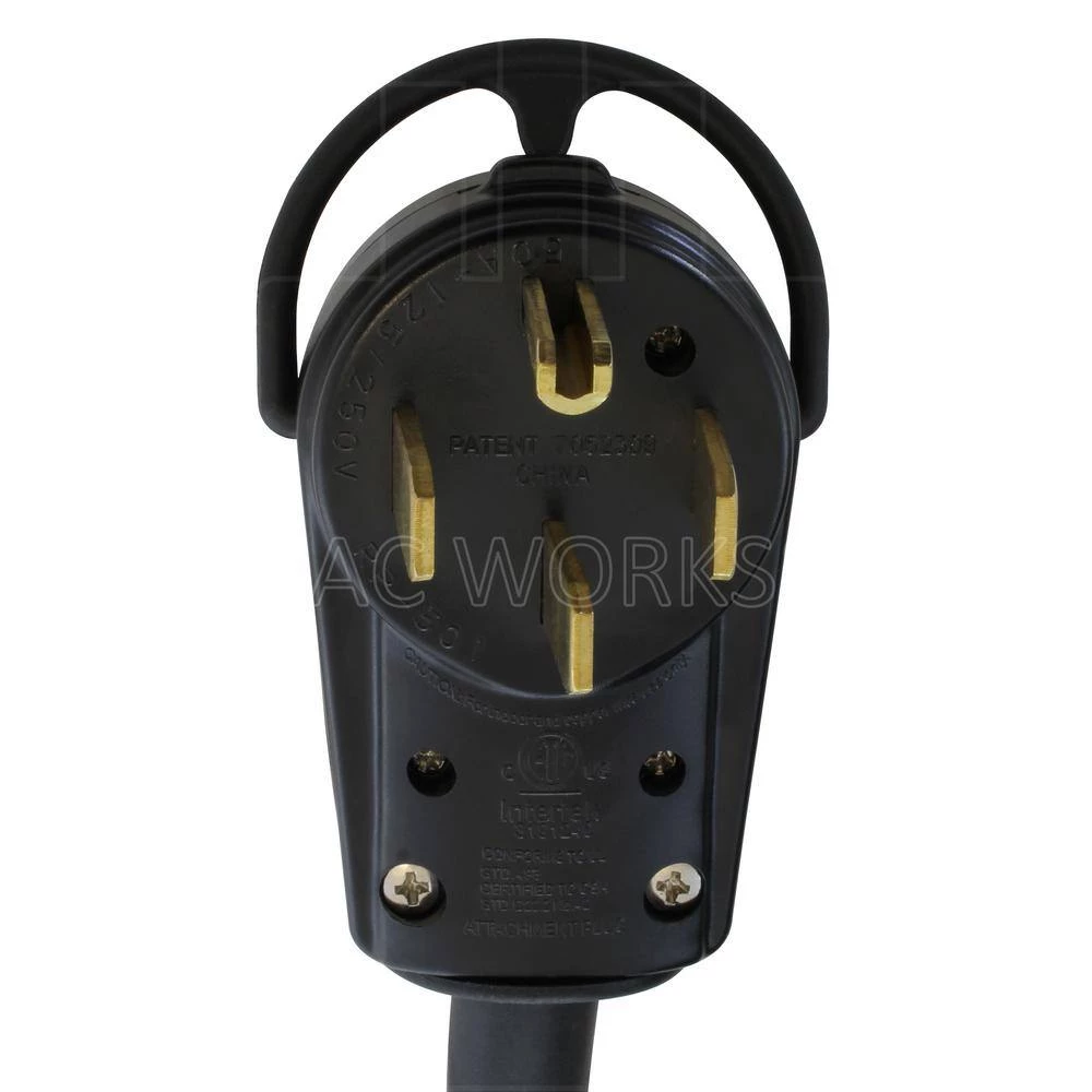 - NEMA 14-50P, 50 Amp, 125/250-Volt, 4-prong rv/range/generator male plug