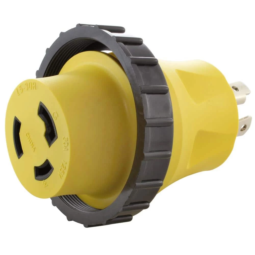 - NEMA L5-30R, RV Marine Style 30 Amp, 125 Volt, 3-Prong Female Connector