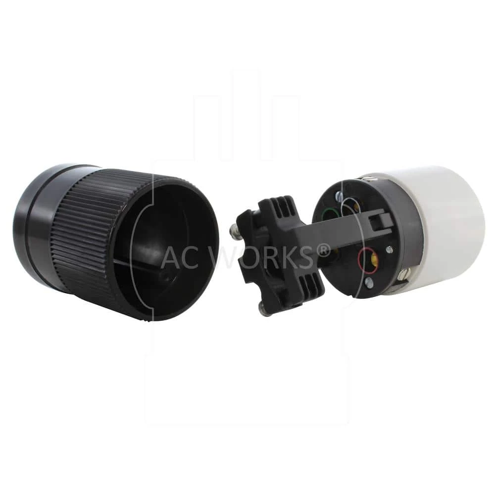 This AC WORKS brand CS6364 wiring device is made of very durable construction able to withstand impacts, chemicals, and weather. It features a weather-tight seal and strain relief structure with SJT, SJO, SOOW, STW, 10/4, 8/4, 6/4, or bigger cable. This product is typically used to create or fix 50 Amp cables and connections. Included with your purchase is a 1-year limited warranty.