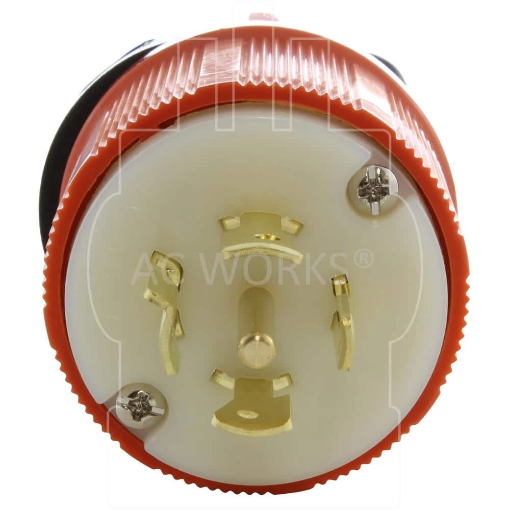This AC WORKS brand NEMA L21-20P wiring device [ASL2120P] is made of a very durable construction able to withstand impacts, chemicals, and weather. It features a weather-tight seal and strain relief structure with SJT, SJO, SOO, STW, 12/5, 10/5, or bigger cables. DIY products have a 1-year limited warranty.
