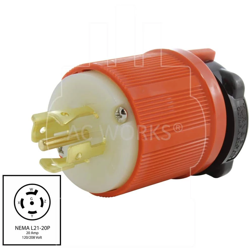 - NEMA L21-20P 20A 3-Phase 120/208V 3PY, 5-Wire Locking Male Plug