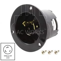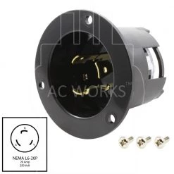 20 Amp Locking 3-Prong 250-Volt NEMA L6-20P Flanged Power Input Inlet by AC WORKS