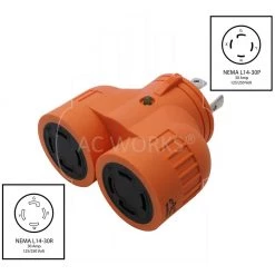 Adapter L14-30P 30 Amp 4-Prong Plug to Two 30 Amp L14-30R 4-Prong Connectors by AC WORKS