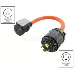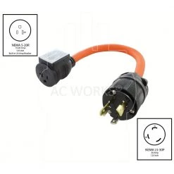 1.5 ft. 30 Amp 3-Prong L5-30P Locking Plug to Household Outlet with 20 Amp Breaker by AC WORKS