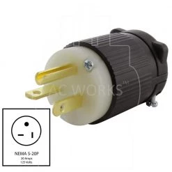 NEMA 5-20P 20 Amp 125-Volt Clamp Style Square Plug with UL, C-UL Approval by AC WORKS