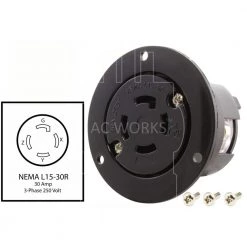 3-Phase 30 Amp 250-Volt NEMA L15-30R Flush Mounting Locking Industrial Grade Receptacle by AC WORKS