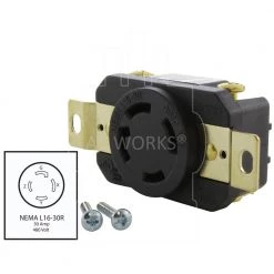 30 Amp 480-Volt 3-Phase Nema L16-30R Flush Mount Locking Industrial Grade Outlet by AC WORKS