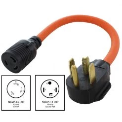 1.5 ft. 10/3 STW 30 Amp NEMA L5-30P Locking Plug to L14-30R Adapter (2-Hots Bridged) by AC WORKS