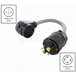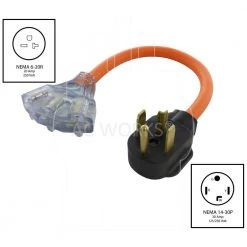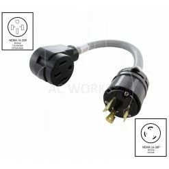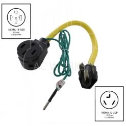 1.5 ft. 3-Prong 30 Amp Dryer Outlet to 14-50R EV/ RV 50 Amp 125-Volt/250-Volt Connector by AC WORKS