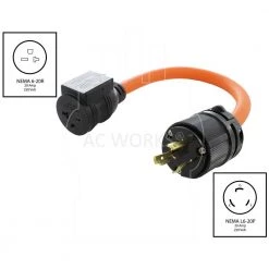 1.5 ft. 30 Amp 3-Prong L5-30P Locking Plug to Household Outlet with 20 Amp Breaker by AC WORKS