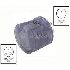 RV 30 Amp TT-30P Plug to L5-30R RV/Marine 30 Amp Detachable Inlet Connection by AC WORKS
