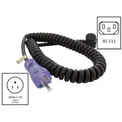 UP to 6.5 ft. 10 Amp 18/3 Coiled Medical Grade Power Cord With C13 Connector by AC WORKS